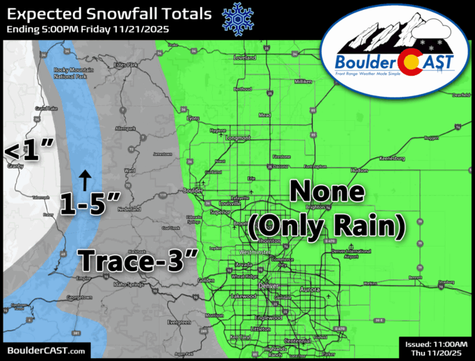 It’s been a tricky week for the weather models — and for us forecasters trying to make sense of it all. Our latest storm system has kept everyone on their toes, thanks to a complicated dance between two low-pressure systems across the Southwest. Each new model run seemed to rewrite the story, with big swings in outcomes and plenty of disagreement between guidance. But now that the storm is closing in, confidence is finally improving: we’re looking at a light precipitation event for the Front Range, with rain the only worry across the lower elevations.
