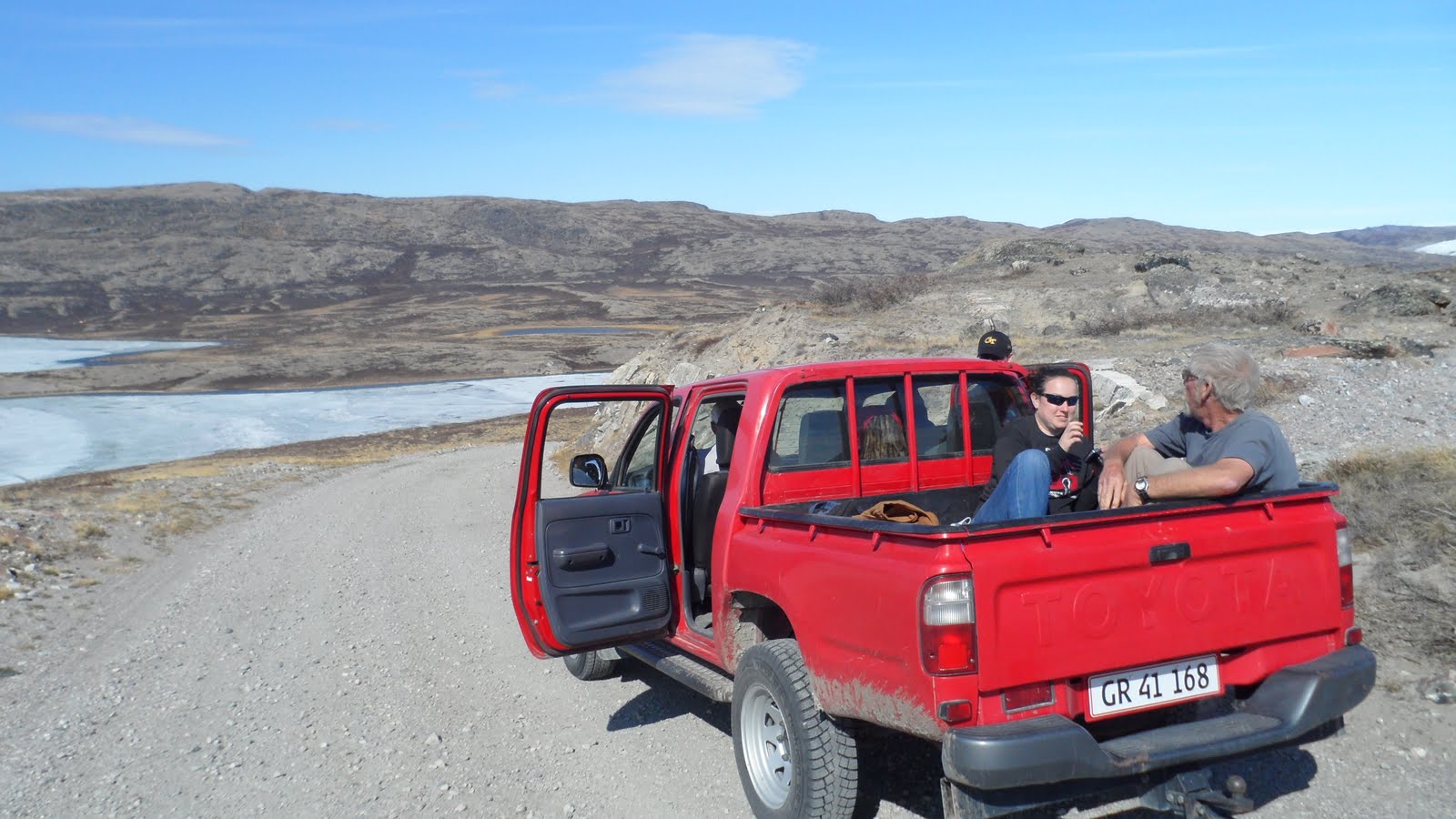 The next day was spent entirely around Kanger. My flight to my final destination, Summit, was not until the following morning. One of the frequent scientists to Greenland knew a guy that would rent out his truck. Does this sound shady? It was. Where would anyone go in Greenland in a truck, especially in a country with virtually no paved roads? You may remember I mentioned Kanger is the number one tourist location in Greenland. This is because the edge of the Greenland Ice Sheet is only 20 miles away, down a bumpy and quite poorly maintained dirt/sand/rock road. A local tourist company repairs the road periodically, and therefore has taken it upon themselves to install a gate to keep free-loaders out. The location of a key to this gate is one of the closest guarded secrets in town. Seriously. You’d think there was something more valuable at the end of that road. Somehow, by a grace of God, we were able to get hold of the key. The car we rented was a circa 1990 Toyota truck. The gentleman who rented it out only wanted $140, and since we rounded up nine people to go, it only cost us around $15 each. The local tourist company charges nearly $200 per person to go on the exact same adventure. What a rip!