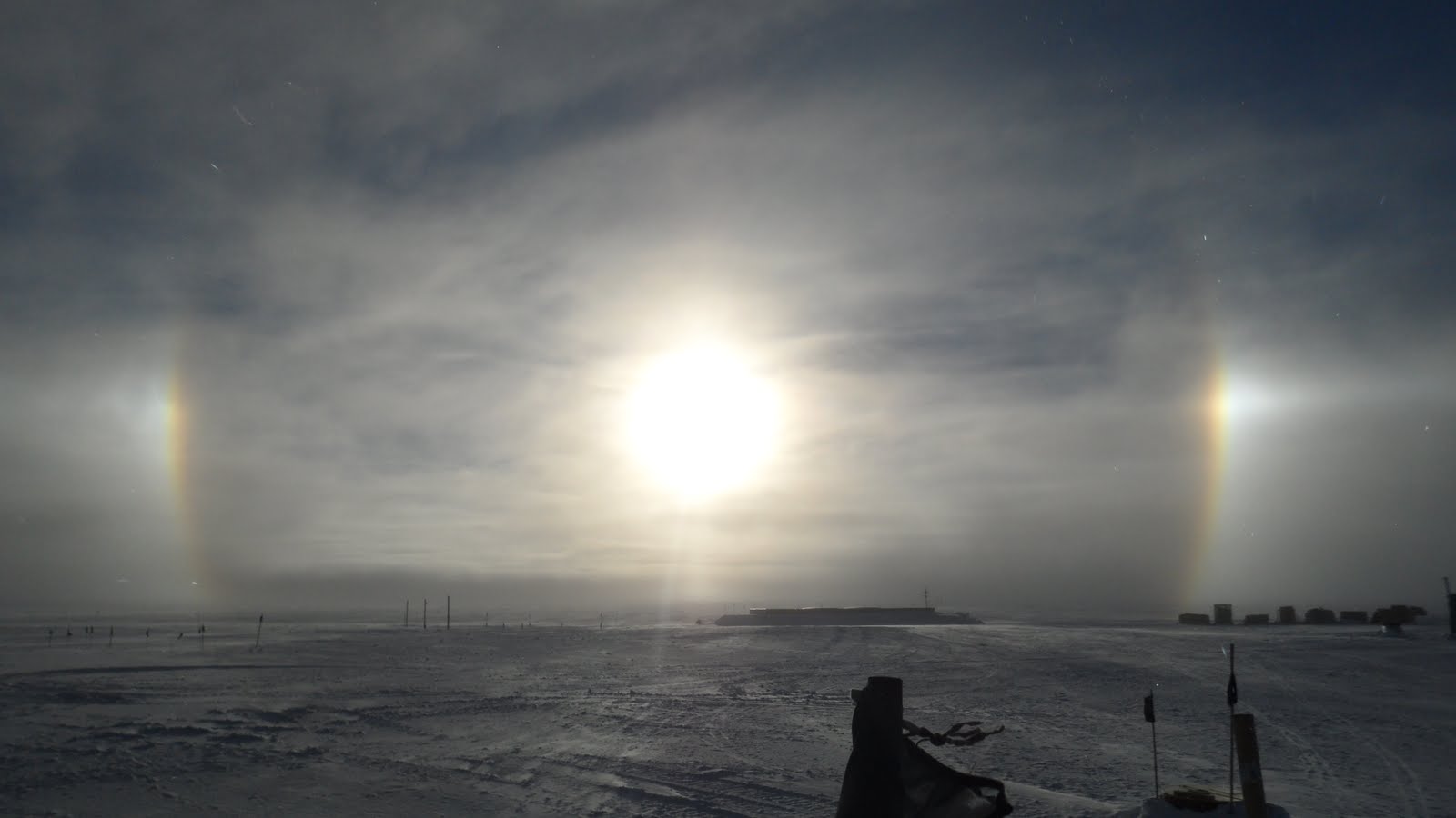 On my last night at Summit, I was able to witness a cool optical phenomenon known as a sundog. These rainbow colored halos form around a low-angle sun in the sky when very fine ice crystals are present in the air through a deep layer. On this occasion, a strong wind was kicking up snow from the surface. These phenomenon are actually fairly common atop the Ice Sheet, but are also visible around the world through a varying number of circumstances.