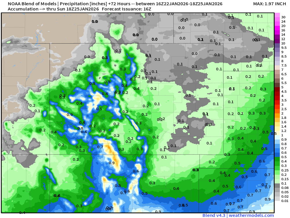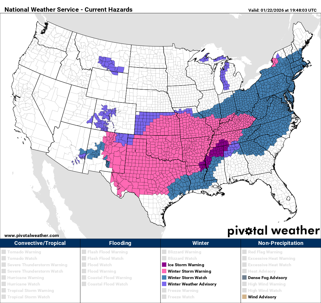 - 🌎 Major national winter storm — While Colorado stays on the sidelines, a powerful coast‑to‑coast system will bring heavy snow and ice from New Mexico to Maine. This storm will likely be remembered for years, if not decades, for its breadth and magnitude of impacts on the nation.