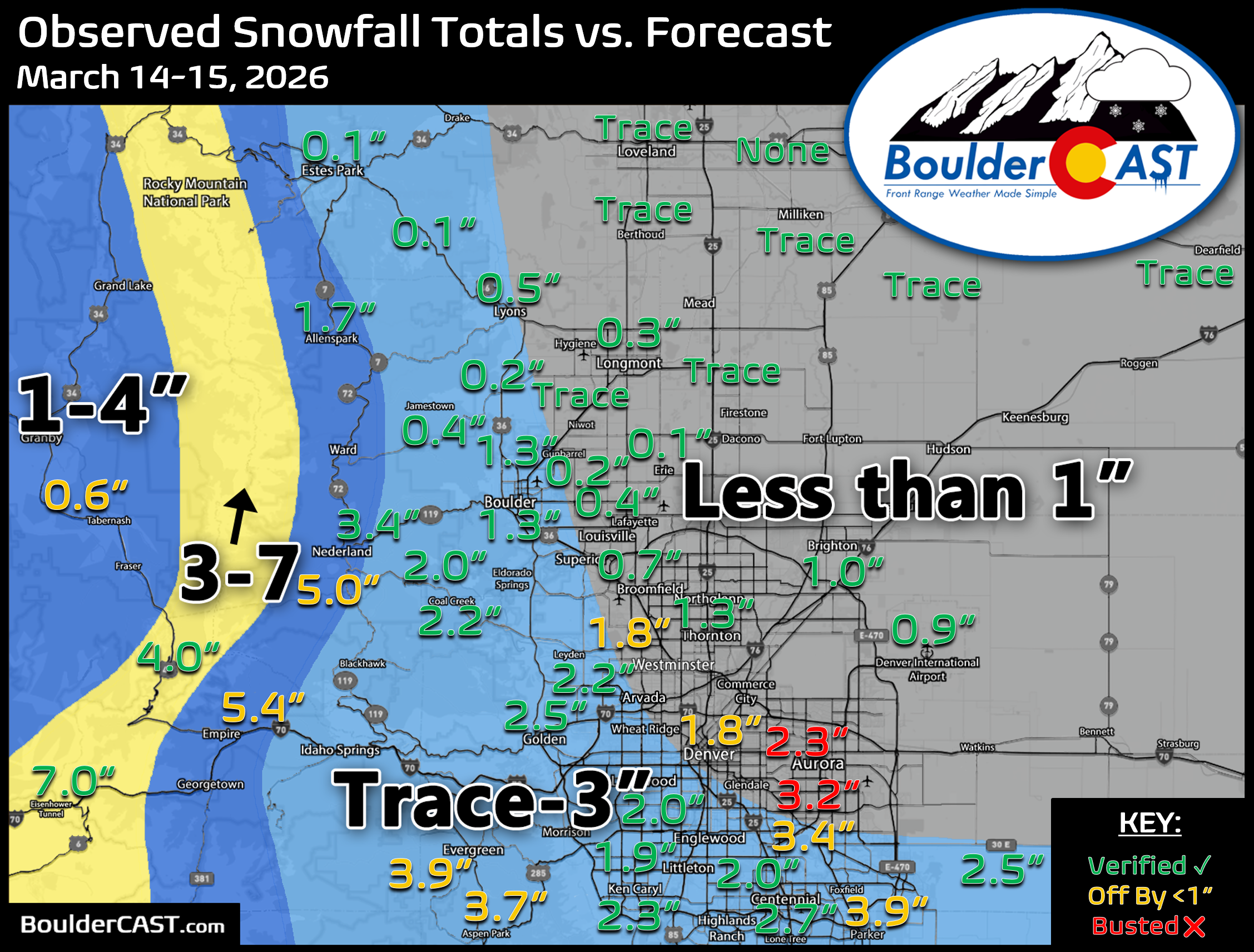 Boulder: 0.3″ (Less than 1″ forecast)