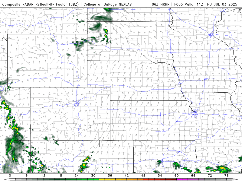 Our best shot at moisture actually comes later — during the overnight into Friday morning. Some guidance is hinting at nocturnal convection kicking up as the disturbance rolls through, aided by cooler air aloft potentially breaking the cap. The HRRR model, for example, is showing a wet start to Friday across northeast Colorado, with scattered showers and storms in play. That said, not all models agree, so we’re cautiously optimistic — just keep rain in mind for the early part of the day.