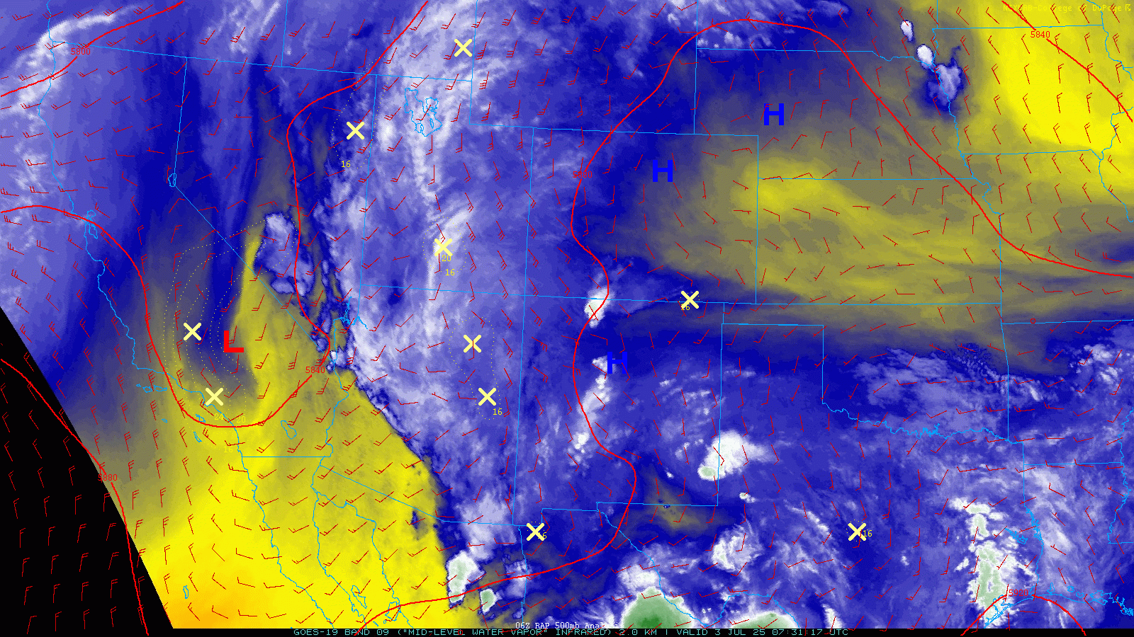 Happy Thursday! We’re starting the day with blue skies across the Front Range, but don’t get too used to it — that’s likely to change later today. A shortwave disturbance currently over southern California is on the move, and it’s set to sweep across Colorado later today into Friday. Together with high pressure to our east, it’s drawing a plume of subtropical moisture northward into the Four Corners region. Already this morning, we’re seeing showers and a few storms popping up over parts of Utah and Arizona.