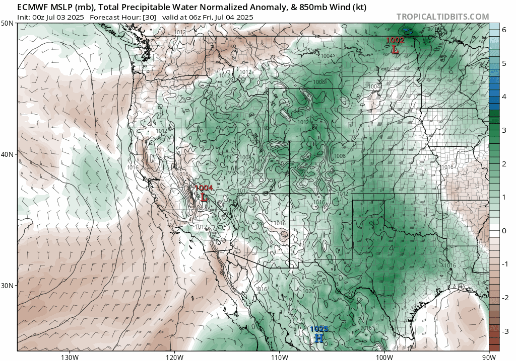 As we move into the weekend, we’ll settle into a classic early July pattern — highs in the low 90s with slim storm chances each day. While the monsoon moisture temporarily dries up across much of the Southwest, eastern Colorado keeps just enough in the tank to maintain a 10–20% risk of late-day storms around the Front Range. The best shot for stronger storms and even some severe weather will be out on the Eastern Plains daily. Conditions across the Mountains may end up being totally dry after Friday as moisture wanes. Thus, if you’ve got camping plans up there, expect excellent weather this weekend.