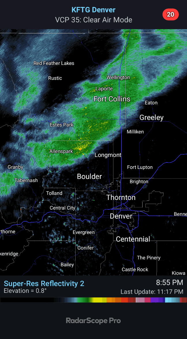 • 🌧️ Evening rain/snow bands materialized, delivering a brief burst of wet snow with a coating in town and 1–3″ in the Foothills.