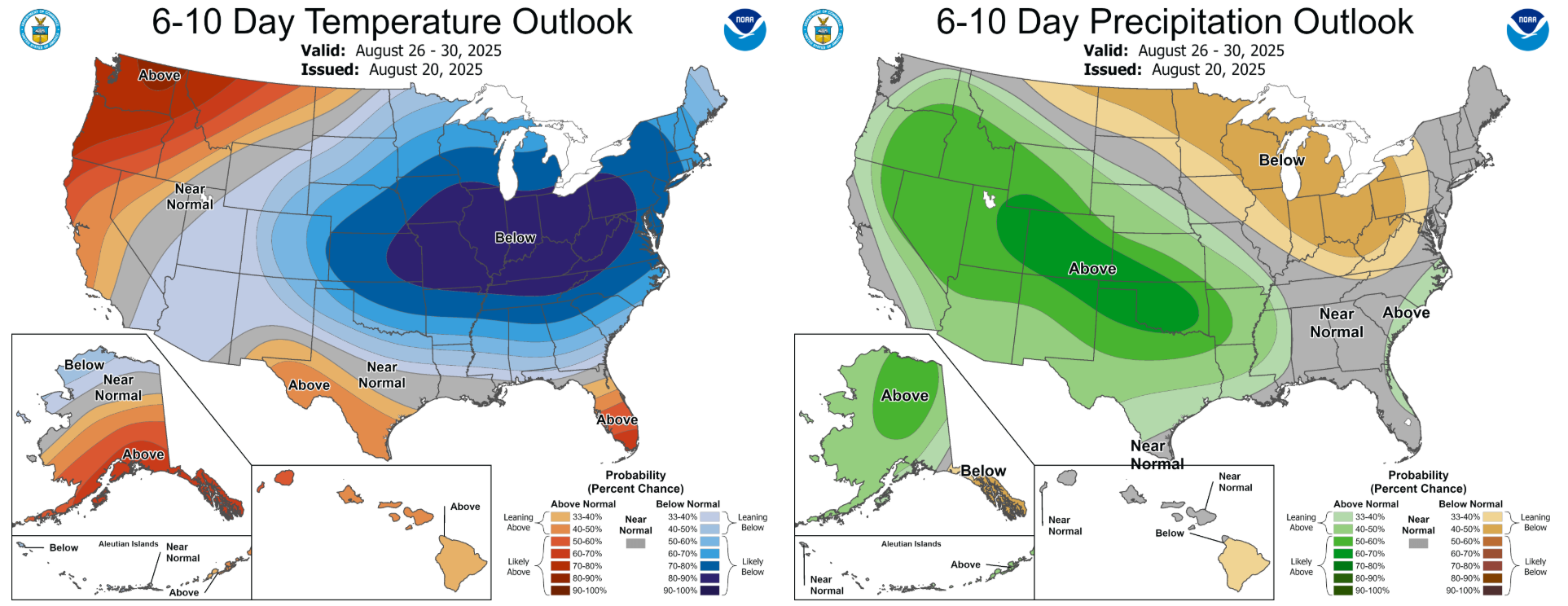 Unseasonably cool temperatures and wet weather are favored to stick around through most of next week, possibly not returning to seasonal normals until after Labor Day.