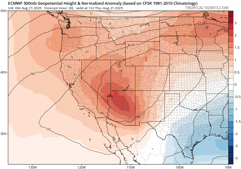 Thursday marks the final chapter of our late-summer heatwave, with record-challenging highs expected across the Front Range — but big changes are on the horizon. A cold front arrives tonight, ushering in cooler temps, a return of thunderstorms, and a wetter, more active pattern that could stick around well into next week. From sizzling heat to damaging hail, monsoonal moisture, and a long stretch of below-normal highs, today’s forecast update has a little bit of everything.
