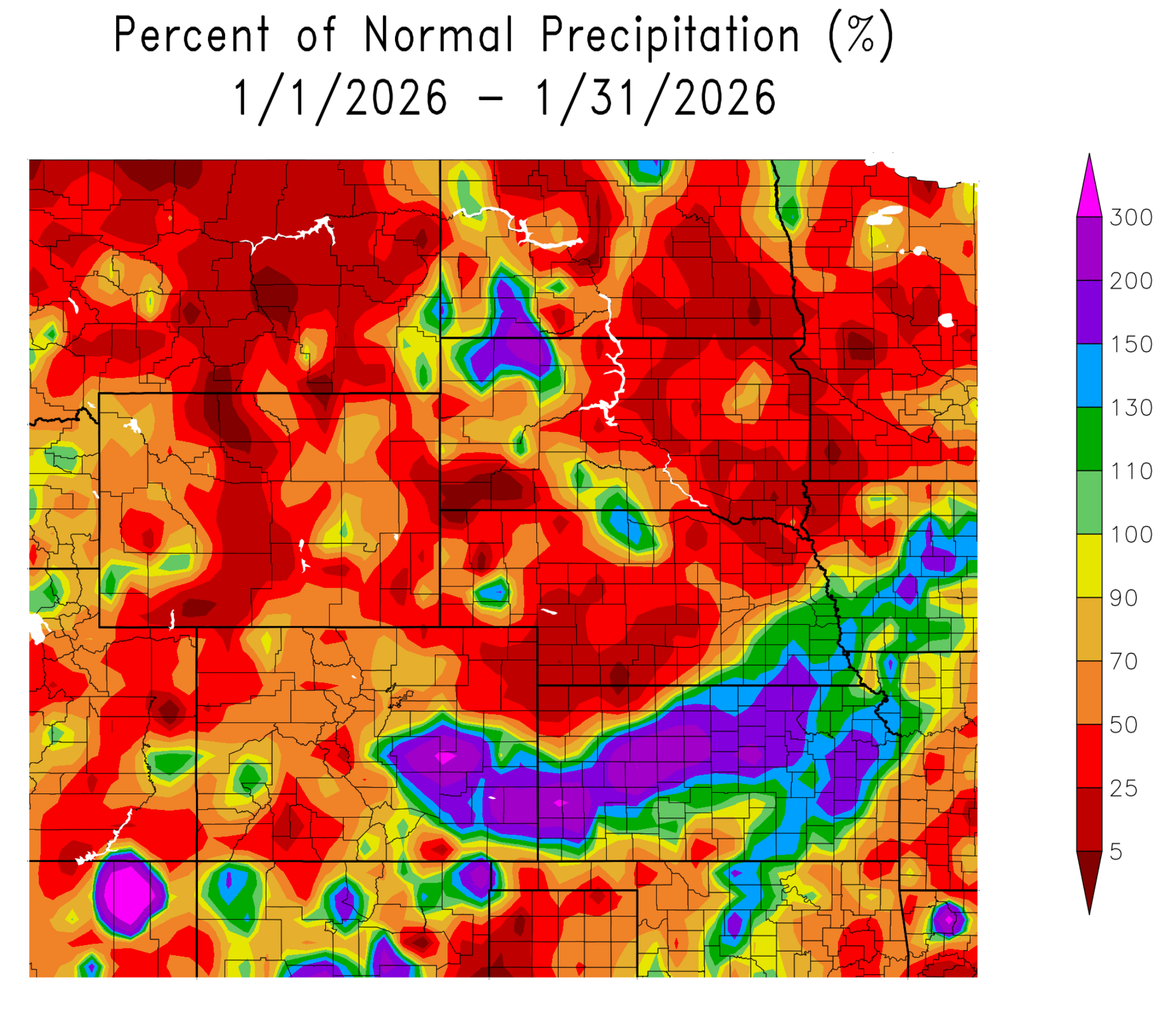 Precipitation totals during January 2026 across the Boulder-Denver Metro area