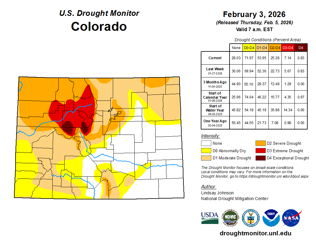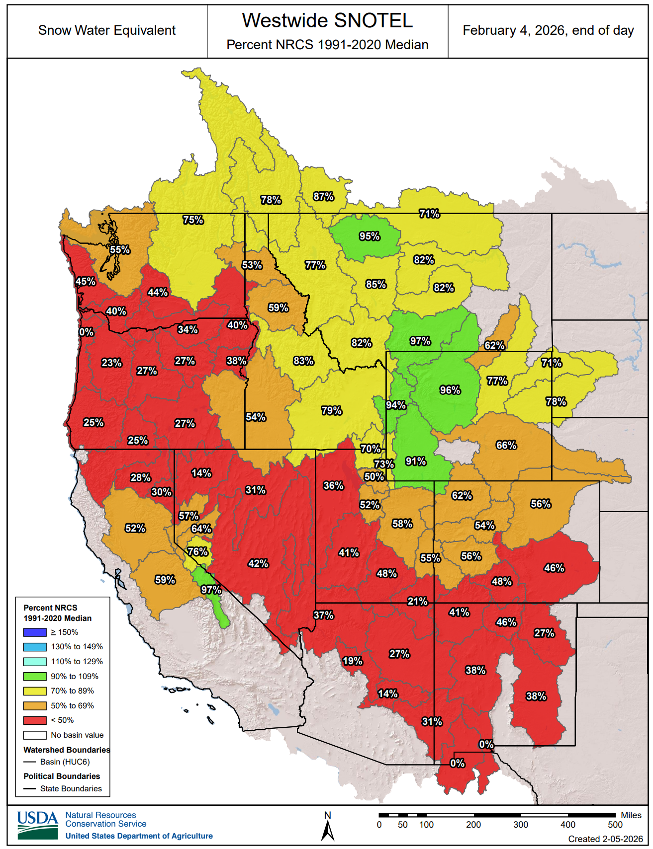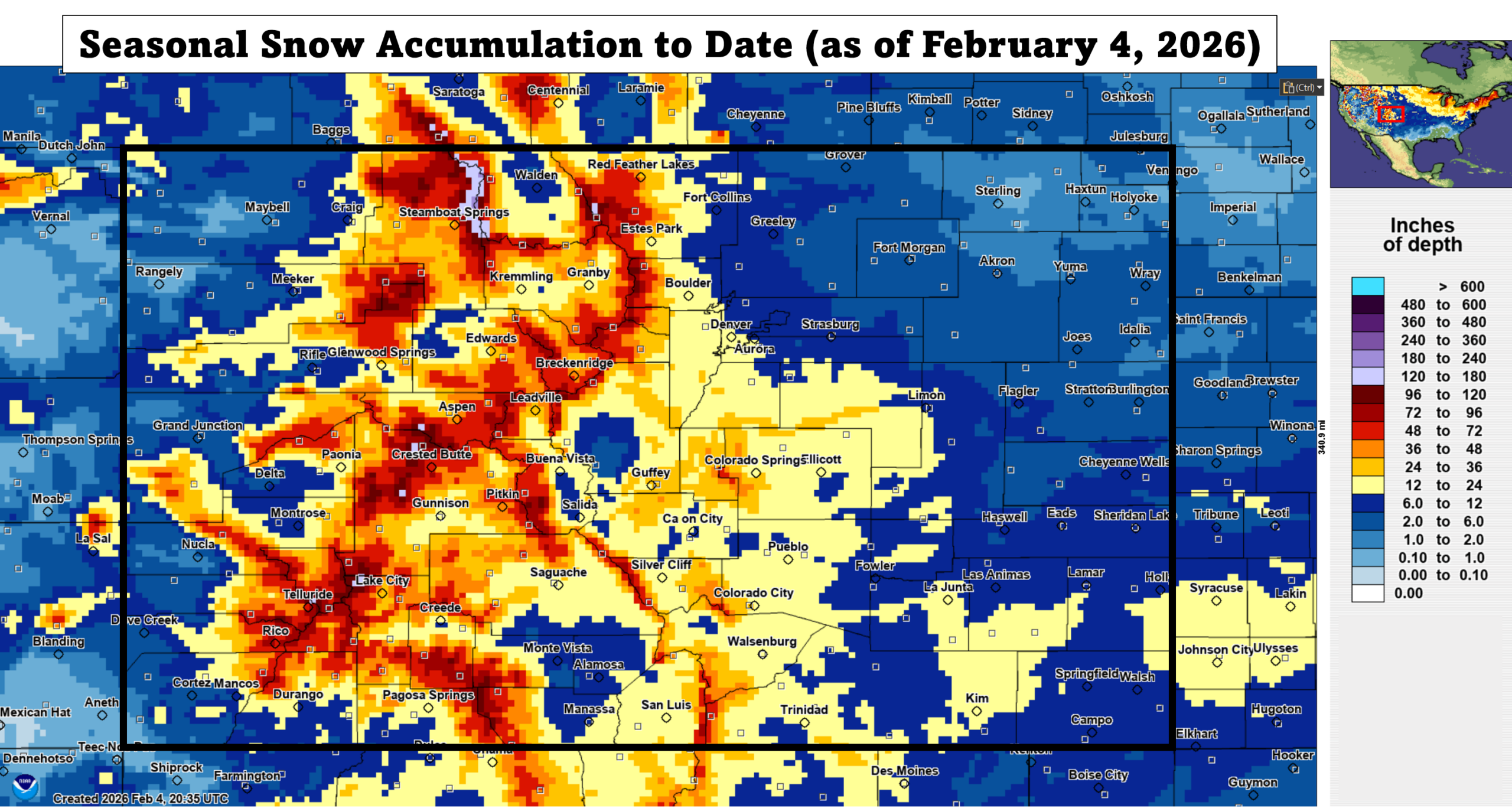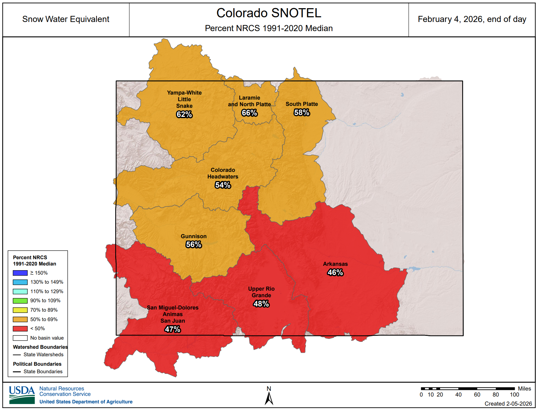 Latest Mountain Snowpack (Colorado at 55% of normal)