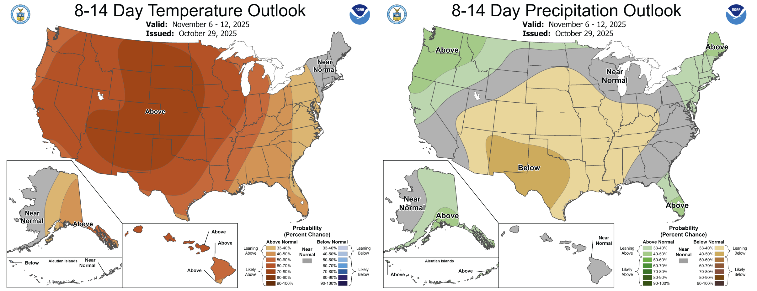 That’s exactly how the NOAA Climate Prediction Center is foretelling the second week of November for us right now as well…