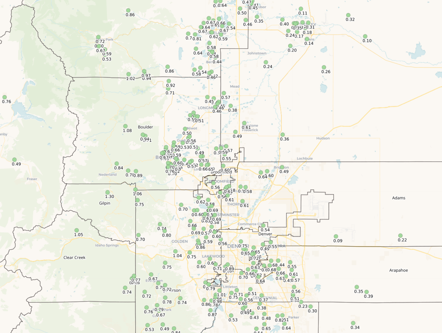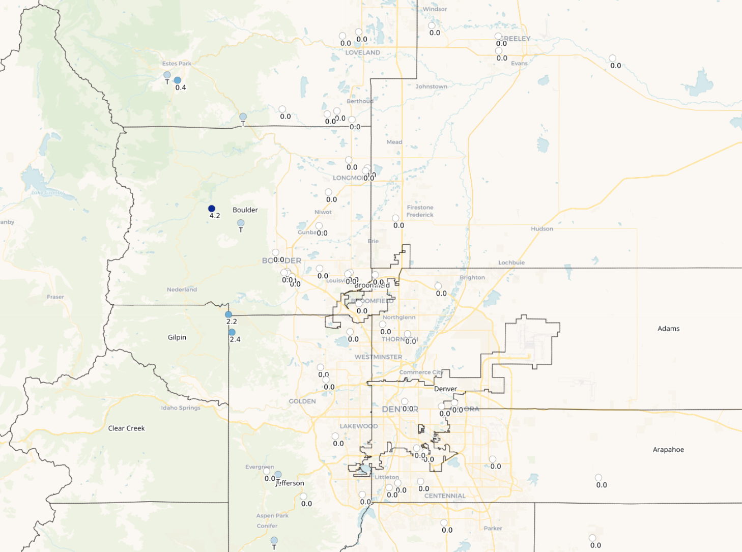 Precipitation totals during October 2025 across the Boulder-Denver Metro area