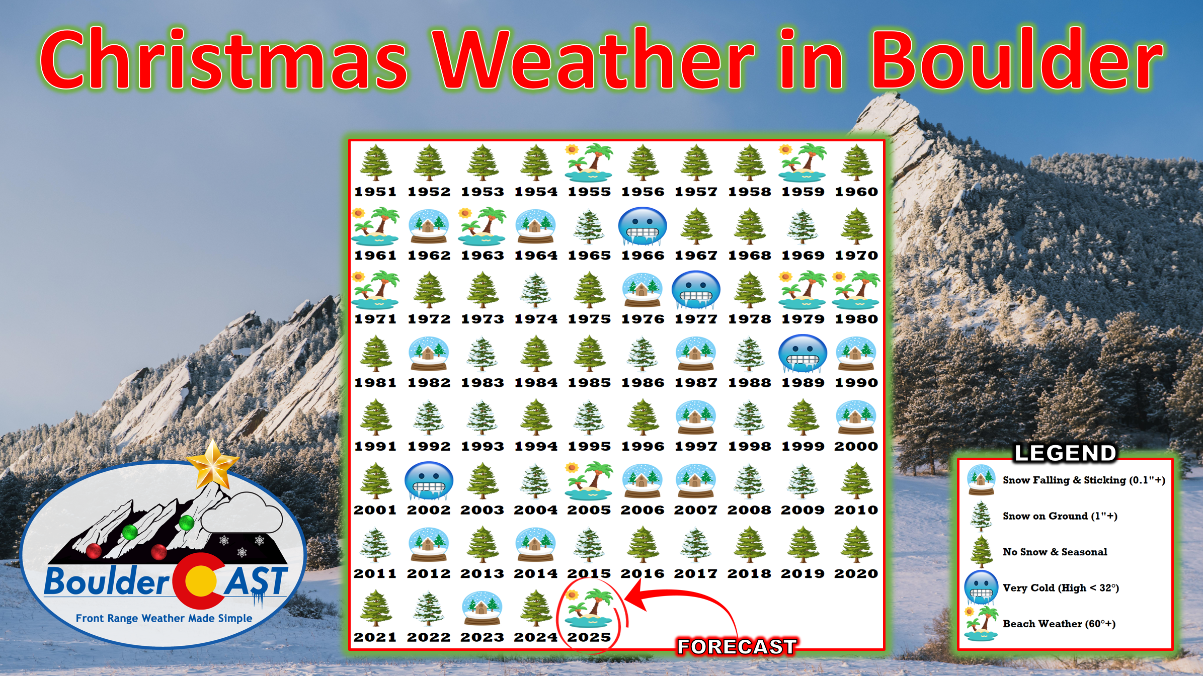 December has been anything but typical along the Front Range, with Boulder shattering warmth records and enduring weeks of bone‑dry weather that have fueled fire danger and stressed our local trees. As we head into Christmas, the holiday will feel more like patio season than sledding weather, with record highs likely and no snow available outside of the Mountains. But don’t pack away the winter gear just yet—a sharp cooldown and even a chance for light snow are on the horizon this weekend. We take a closer look this historically warm and dry December, the scorching Christmas forecast, and peek ahead to what’s next.