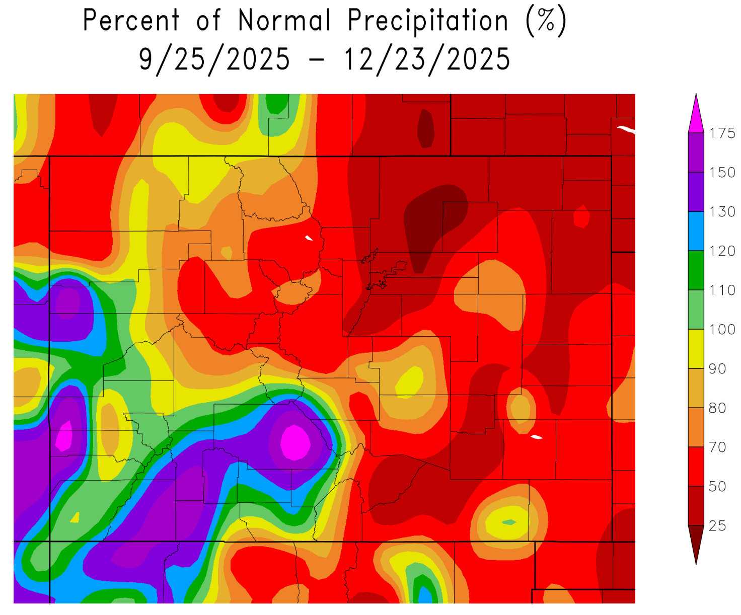 Again, this dryness isn’t something exclusive to Boulder. Much of Colorado has been bone dry over the last three plus months, with some areas receiving less than 25% of their normal precipitation during this timeframe.
