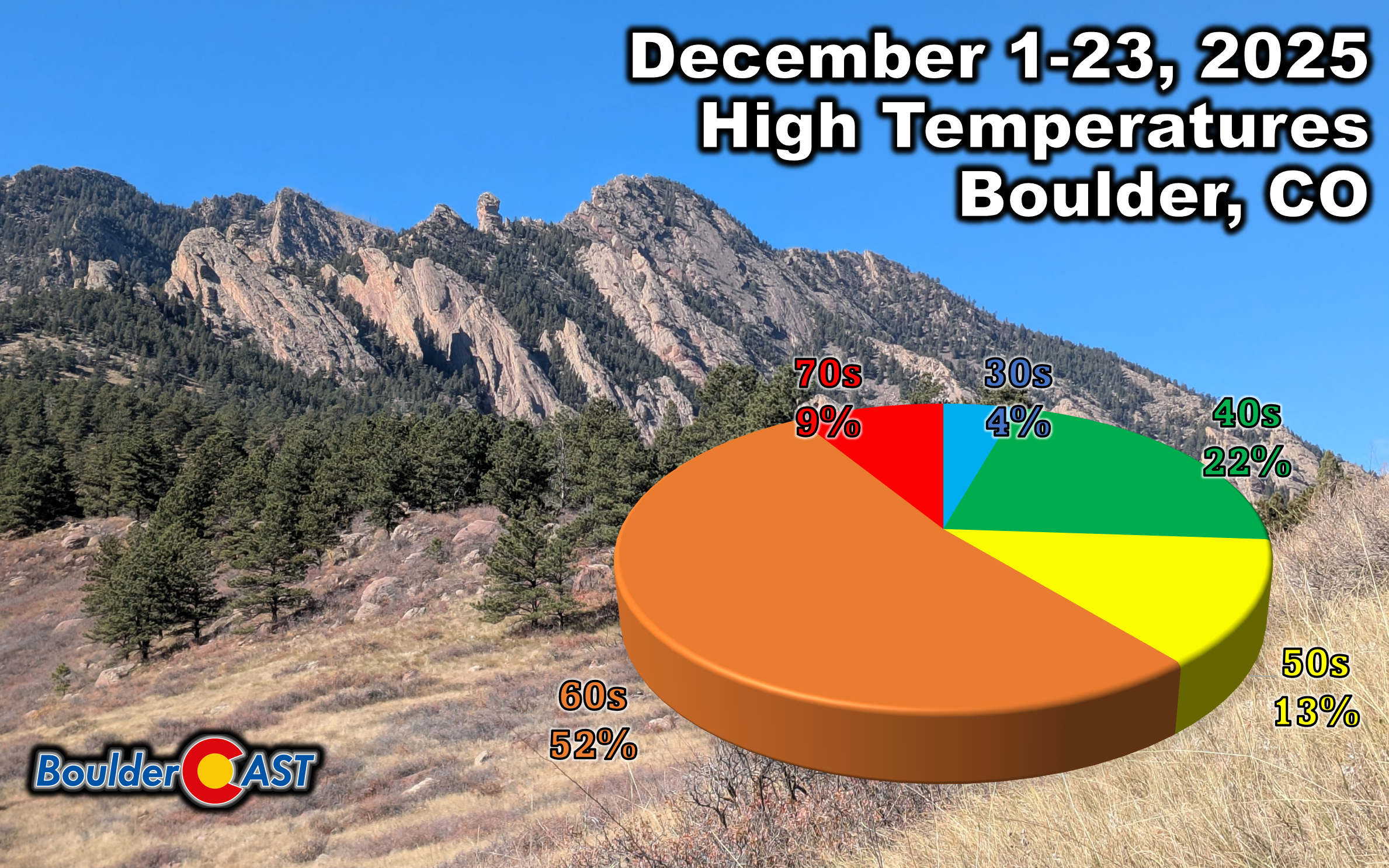 📊 Unusual streaks: 61% of December days have been in the 60s or 70s in Boulder; we barely avoided an unprecedented 16+ day run of extreme warmth.