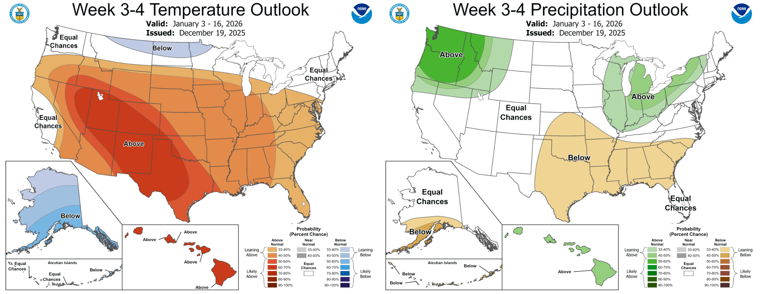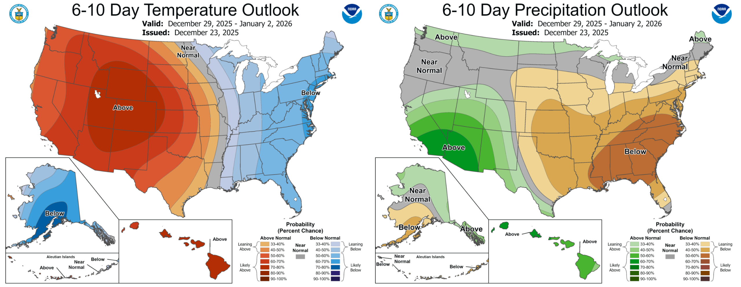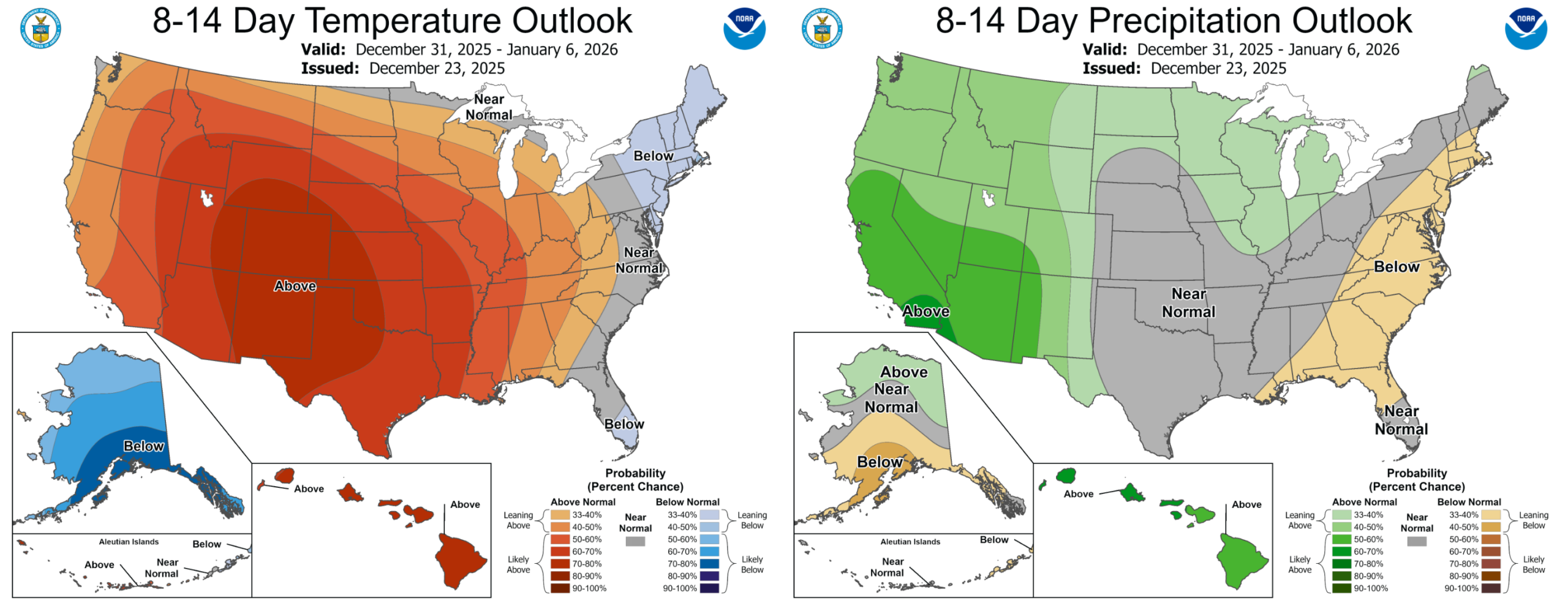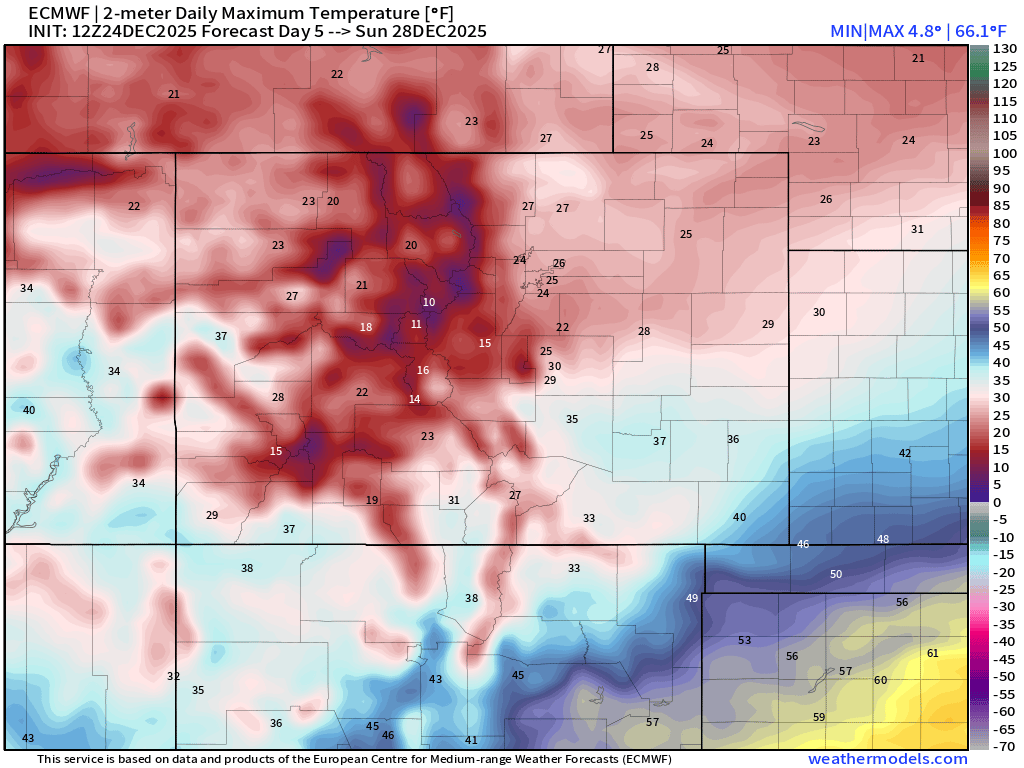 🎄 Brown Christmas forecast — Near‑record warmth expected Christmas Eve/Day, with rain/snow showers in the Mountains
