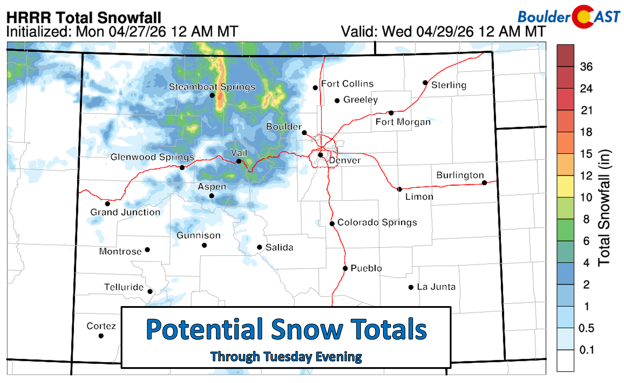 As April winds down, several moisture‑rich systems are lining up along the Front Range, each bringing a mix of clouds, cooler temperatures, rain, and Mountain snow. Most days the forecast is straightforward, but one late‑week setup has quite variable outcomes. If you want to know when the dreariest stretches will be, how much moisture we can realistically expect, and when warmer weather will return, read on for all the details.