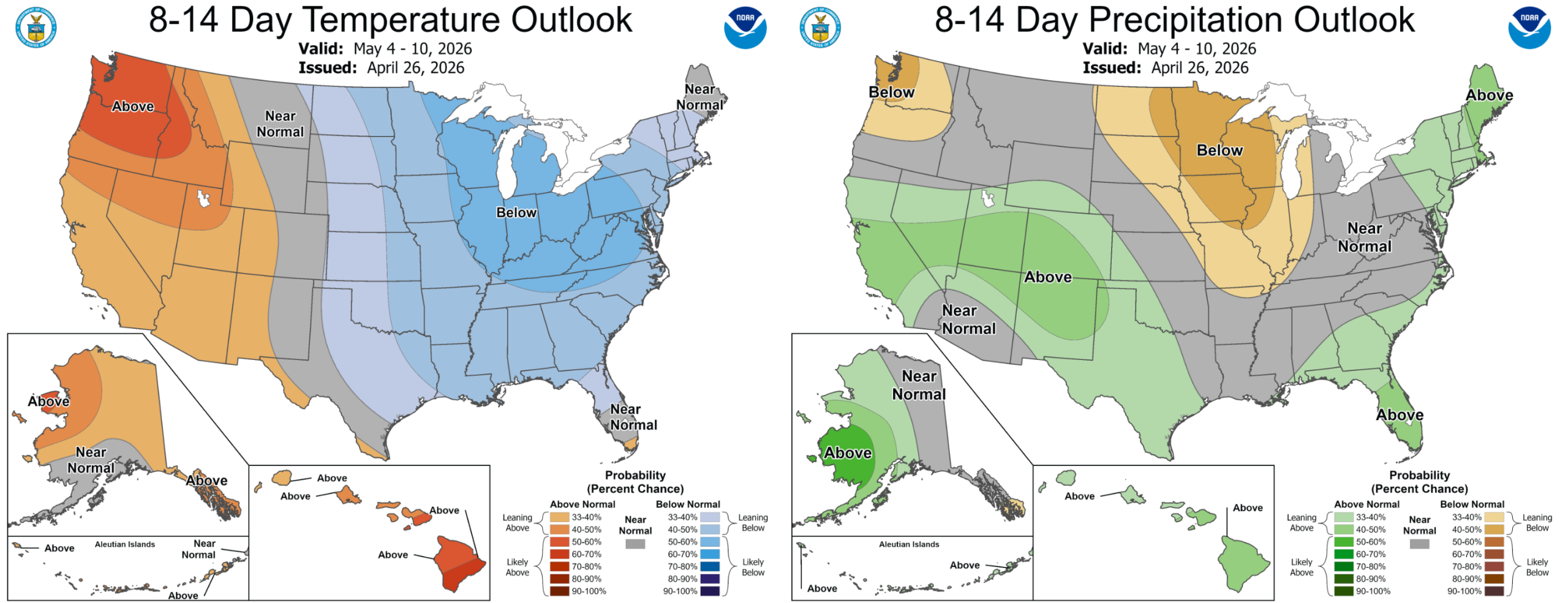 Overall, the five‑day forecast is excellent news for drought relief: daily precipitation chances, cooler temperatures, and absolutely no fire‑weather concerns.