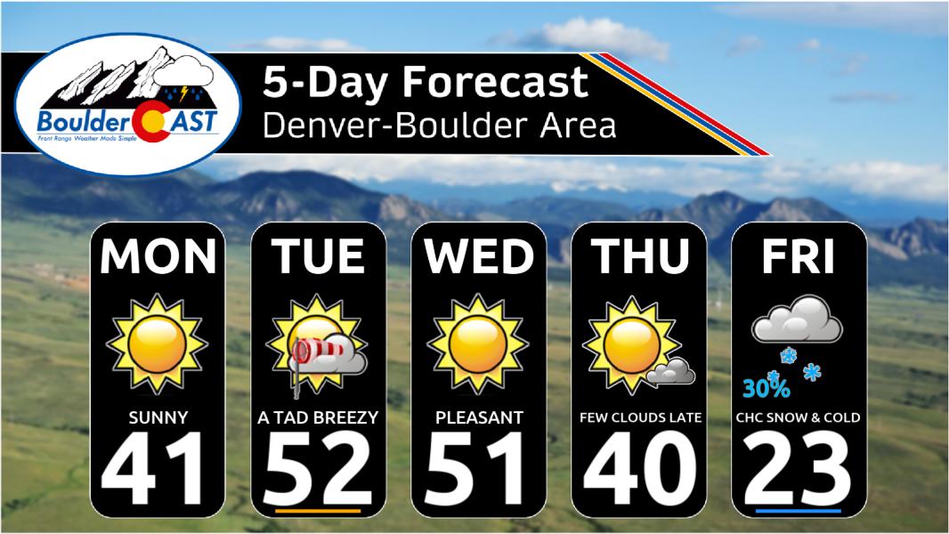 DISCLAIMER: This weekly outlook forecast is created Monday morning and covers the entire upcoming week. Accuracy will decrease as the week progresses as this post is NOT updated. To receive daily updated forecasts from our team, among many other perks, subscribe to BoulderCAST Premium.