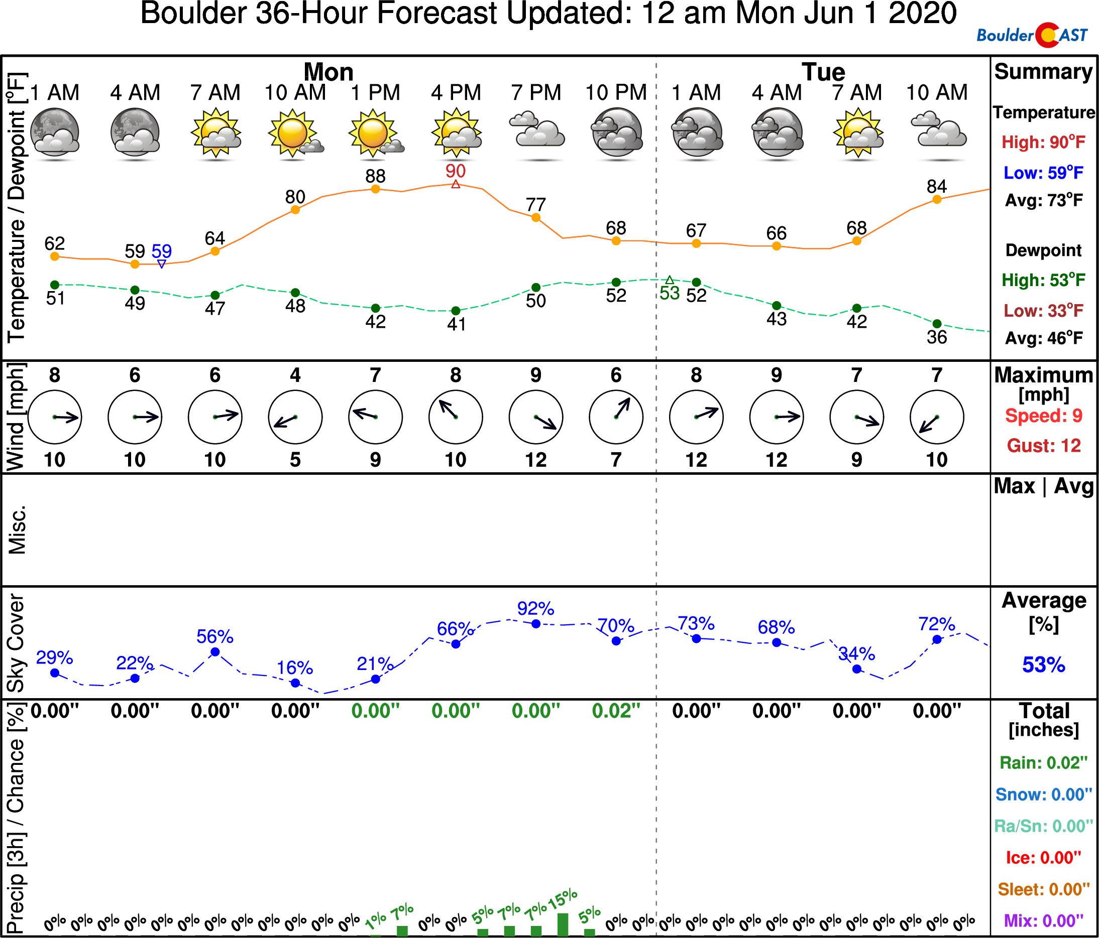 If Boulder hits 90°F on Monday, it will be a new record high for June 1st (current record 89°F from 1997).