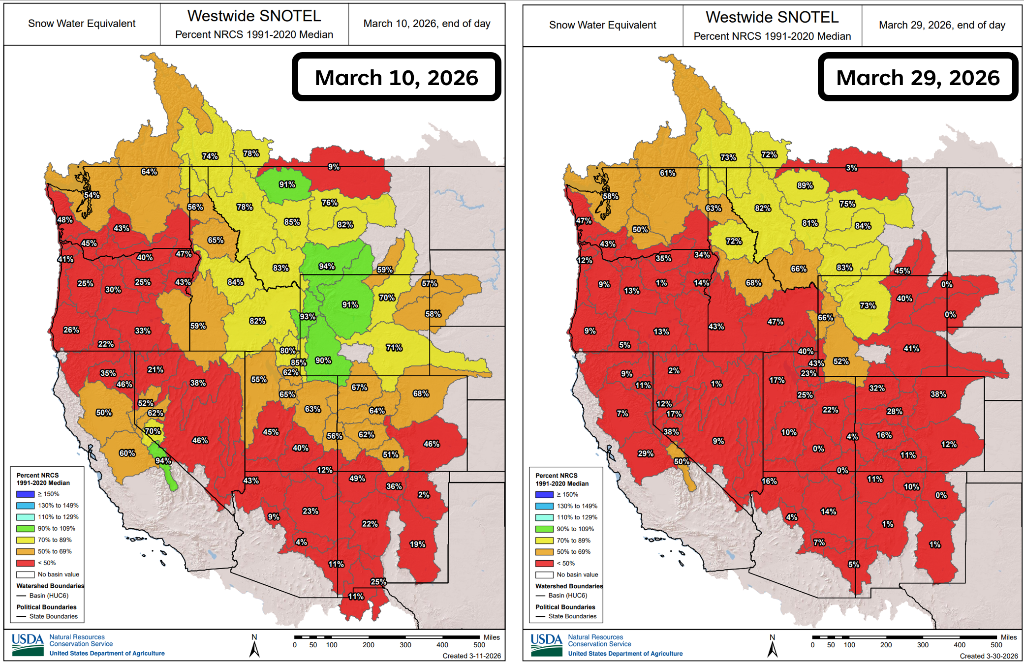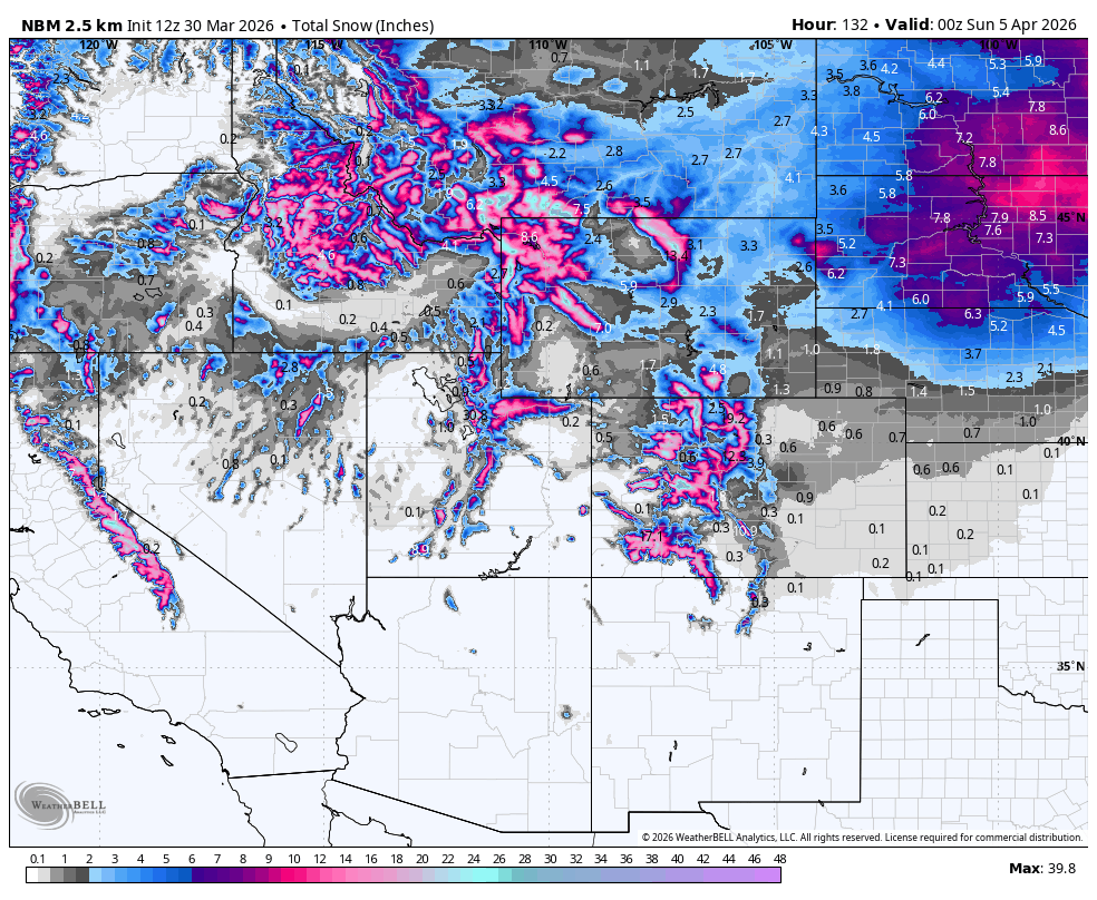 Even with a brief early‑April cooldown and some light precipitation on the way this week, the damage done is largely irreversible. The West is entering April with a snowpack profile more typical of late May and that’s not going to change.