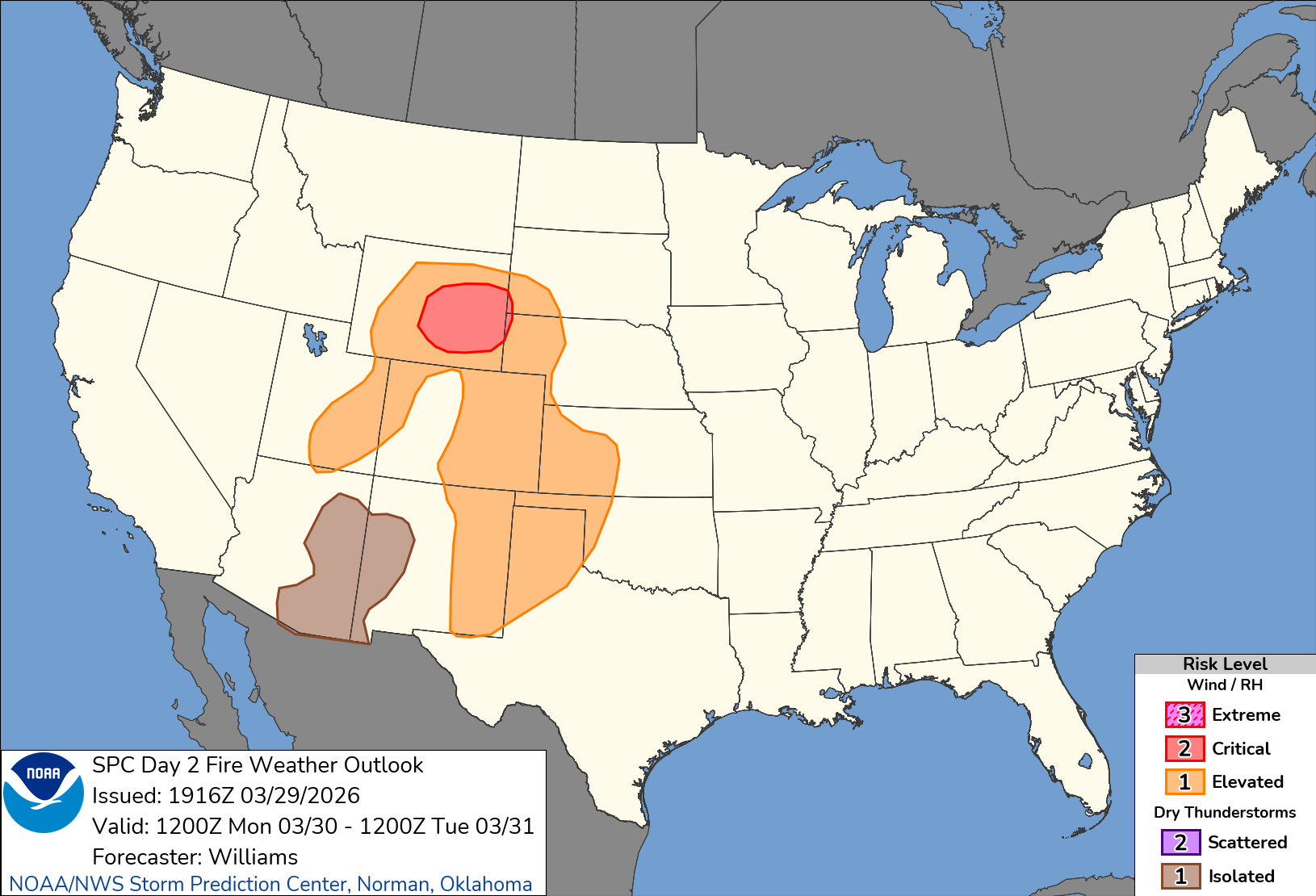 The fire danger threat extends over much of the eastern sections of Colorado, western Kansas, the panhandle of Texas, and eastern New Mexico, with a most critical area being over southeast Wyoming.