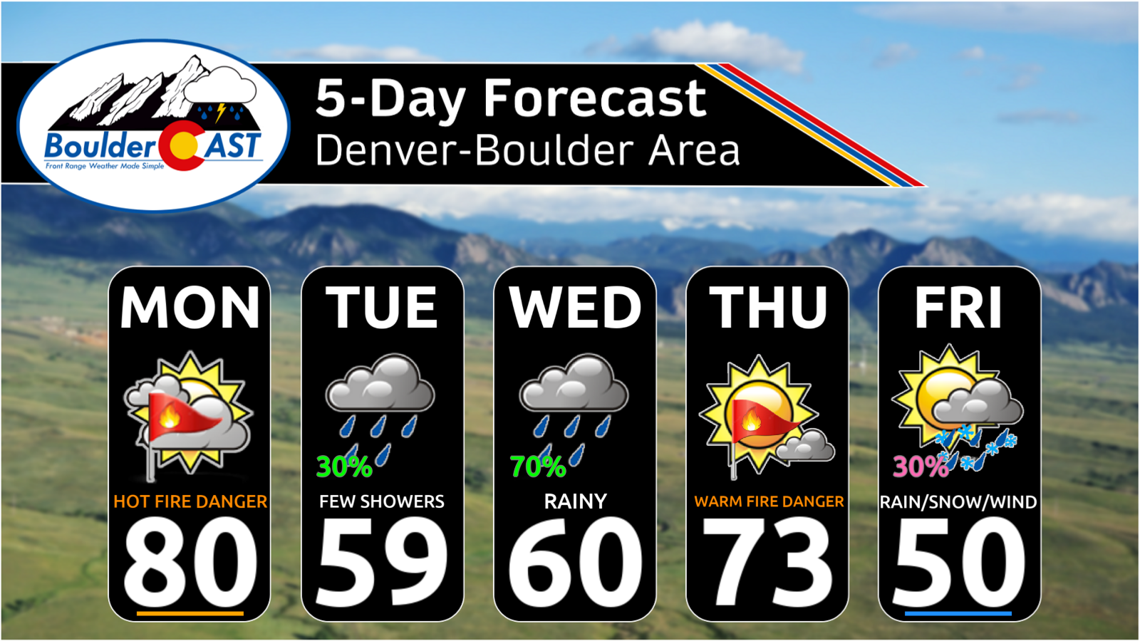 DISCLAIMER: This weekly outlook forecast is created Monday morning and covers the entire upcoming week. Accuracy will decrease as the week progresses as this post is NOT updated. To receive daily updated forecasts from our team, among many other perks, subscribe to BoulderCAST Premium.