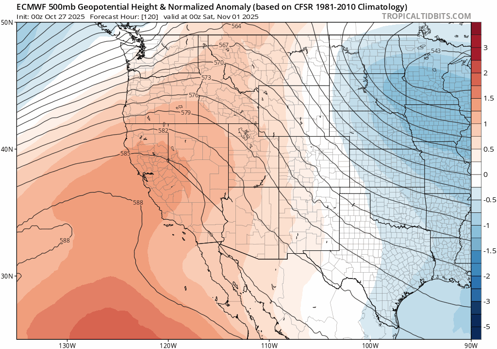 A few model solutions, including the Canadian, ECMWF, and GFS-AI models, suggest the the late-week cold front will contain a weak and fast-moving shortwave diving down out of Wyoming sometime Friday. Much of the guidance is completely dry. However, if the system were to trend stronger and more westward, it could favor a rain/snow chance over the area (mostly Mountains). Confidence in that verifying right now is pretty low, but it’s worth keeping an eye on it given the time of year.