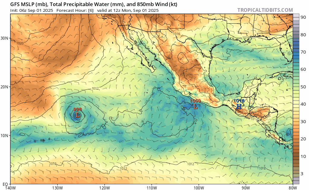 The latest GFS model forecast shows would-be Hurricane Lorena making landfall in the Baja on Friday with the remnants heading towards Colorado over the weekend.