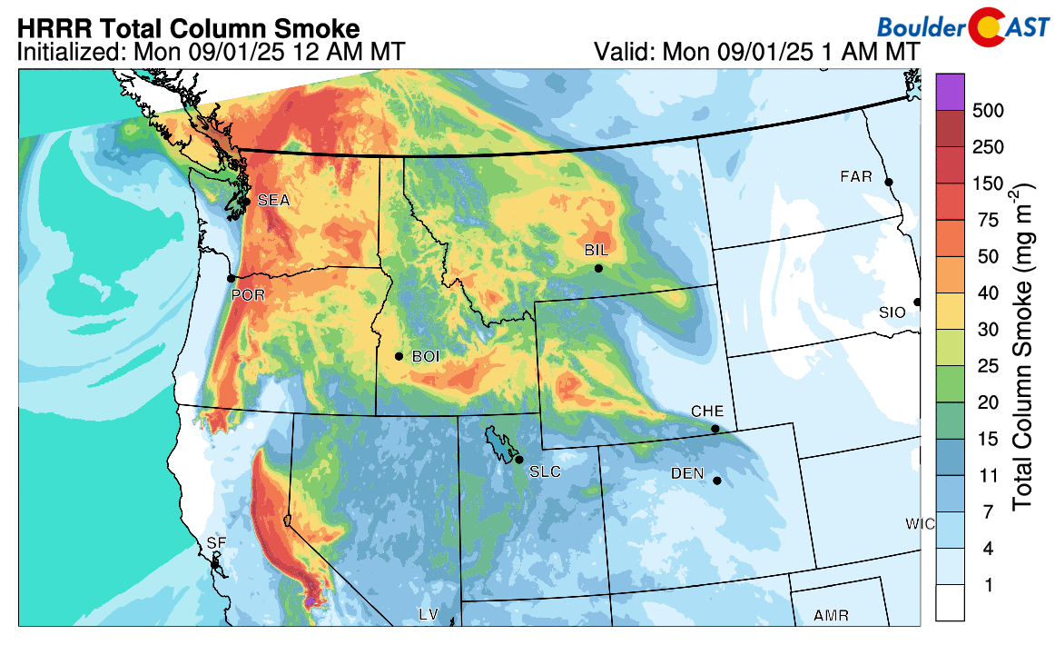 The soggy end to August will not roll into September. Overall, it’s going to be a pretty mellow start to the month for Colorado and the Front Range. We’re tracking a couple of cold fronts and some splotchy rain chances, but nothing too dramatic is on the horizon. The most notable feature might actually be wildfire smoke drifting in from the Pacific Northwest and western Canada. By Tuesday and into midweek, upper-level winds will steer that haze into the Denver Metro area . After that, things get a bit murky — literally and figuratively — as smoke coverage becomes harder to pin down but it does seem likely there will be several smoky days this week.