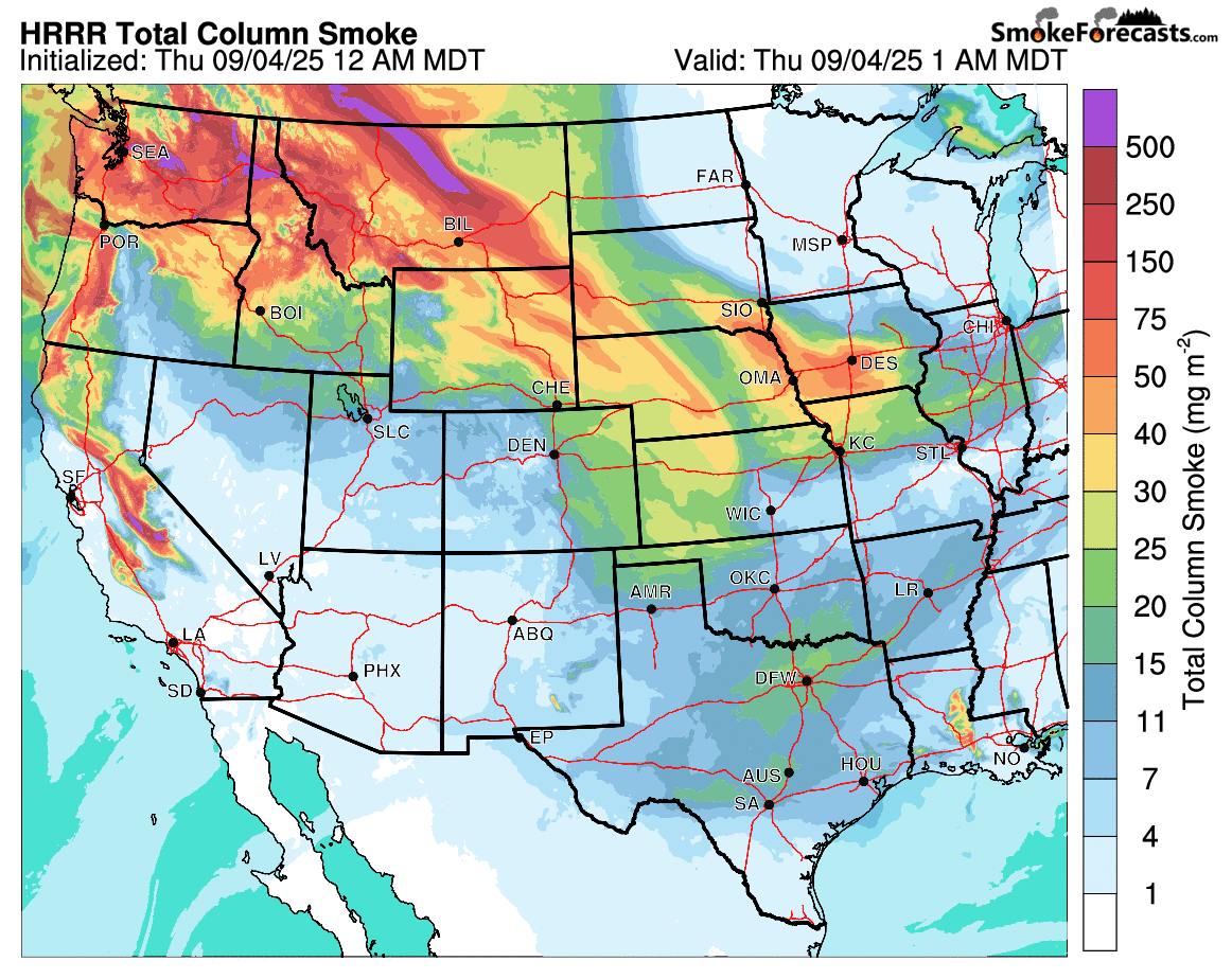 Last Thursday’s well-advertised cold front brought cooler temperatures but also a thick wall of wildfire smoke into the Front Range. The smoke largely originated from wildfires burning in western Canada, but some smoke from the Pacific Northwest was also mixed in.