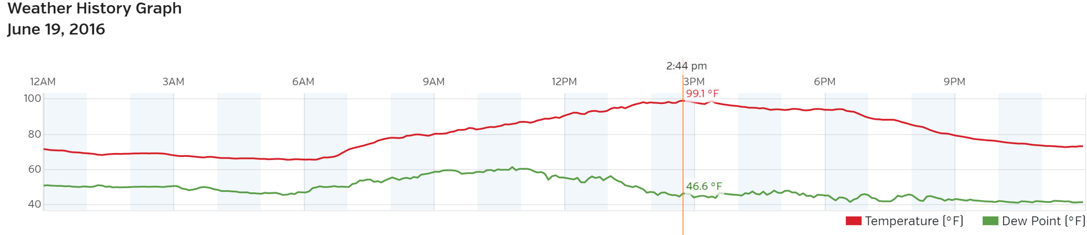 The city of Boulder tied a record high temperature yesterday (Sunday), officially soaring to 97 degrees. This was our warmest day in nearly two years (since July 7, 2014). Other locations around town, including the Boulder Airport and NCAR Foothills Lab reached 99 degrees. BoulderCAST Station also recorded a high of 99 degrees. Unfortunately, we may be dealing with another record-breaking day this week…