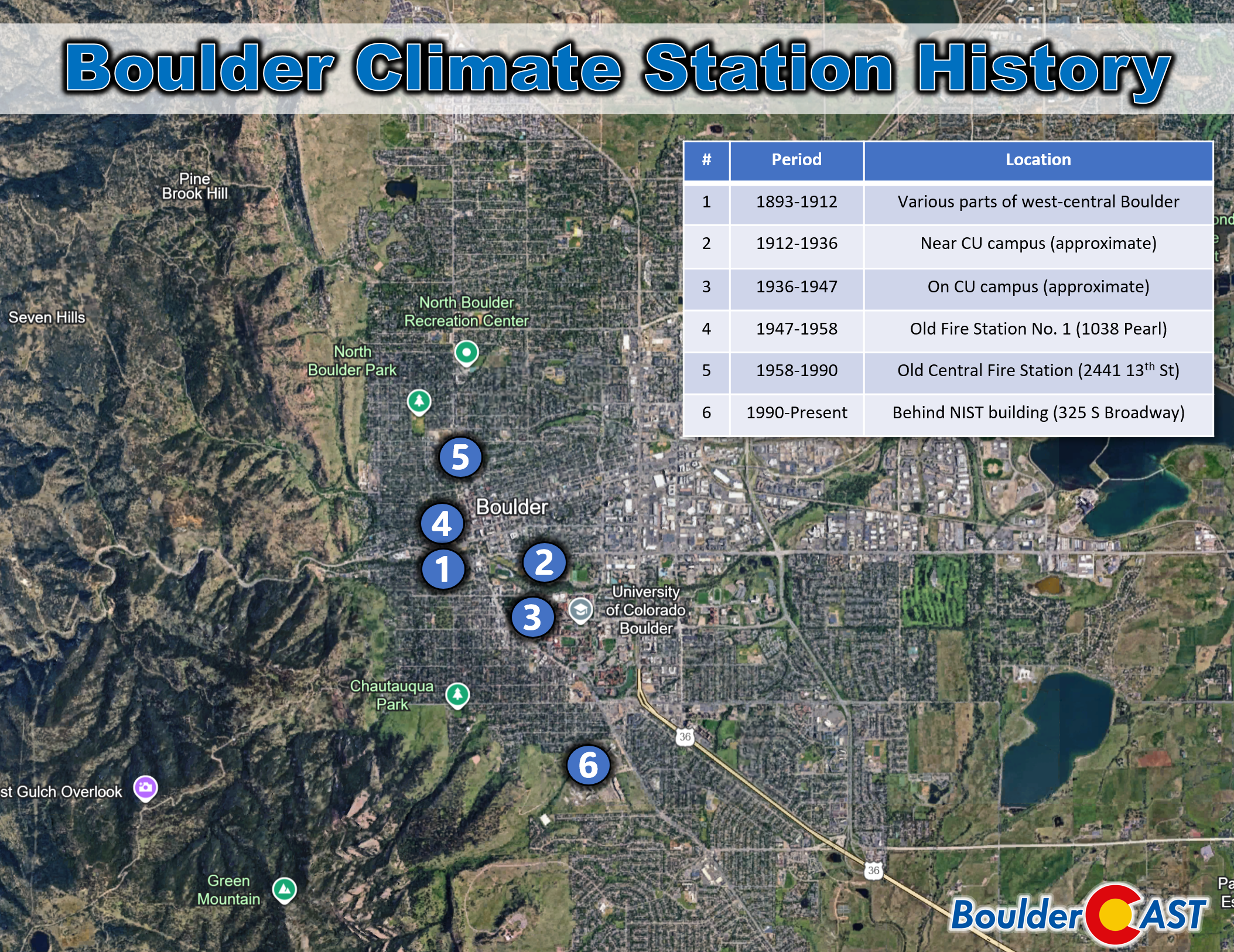 - Wind: Not recorded at this site and was never part of Boulder’s historical climate observations.