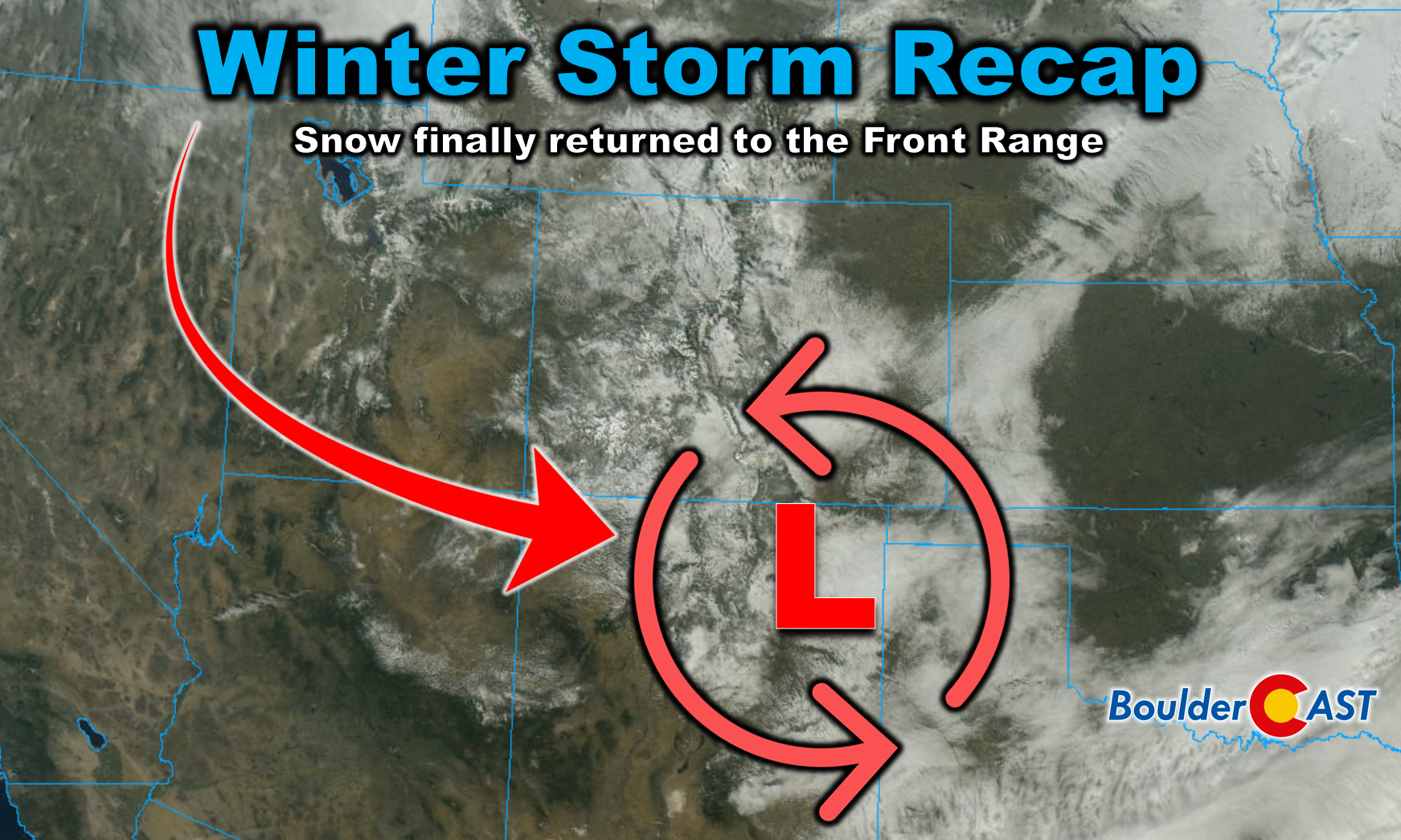 Winter finally showed up in style this week along the Front Range. After a sluggish start to the season, our first true snowstorm delivered nearly 18 hours of steady flakes, painting Boulder, Denver, and much of Colorado in white. But this wasn’t just a simple upslope event—there were some fascinating atmospheric twists that kept the snow machine running longer than expected. We review the storm setup and snowfall totals which greatly favored the western side of the Metro area including Boulder.