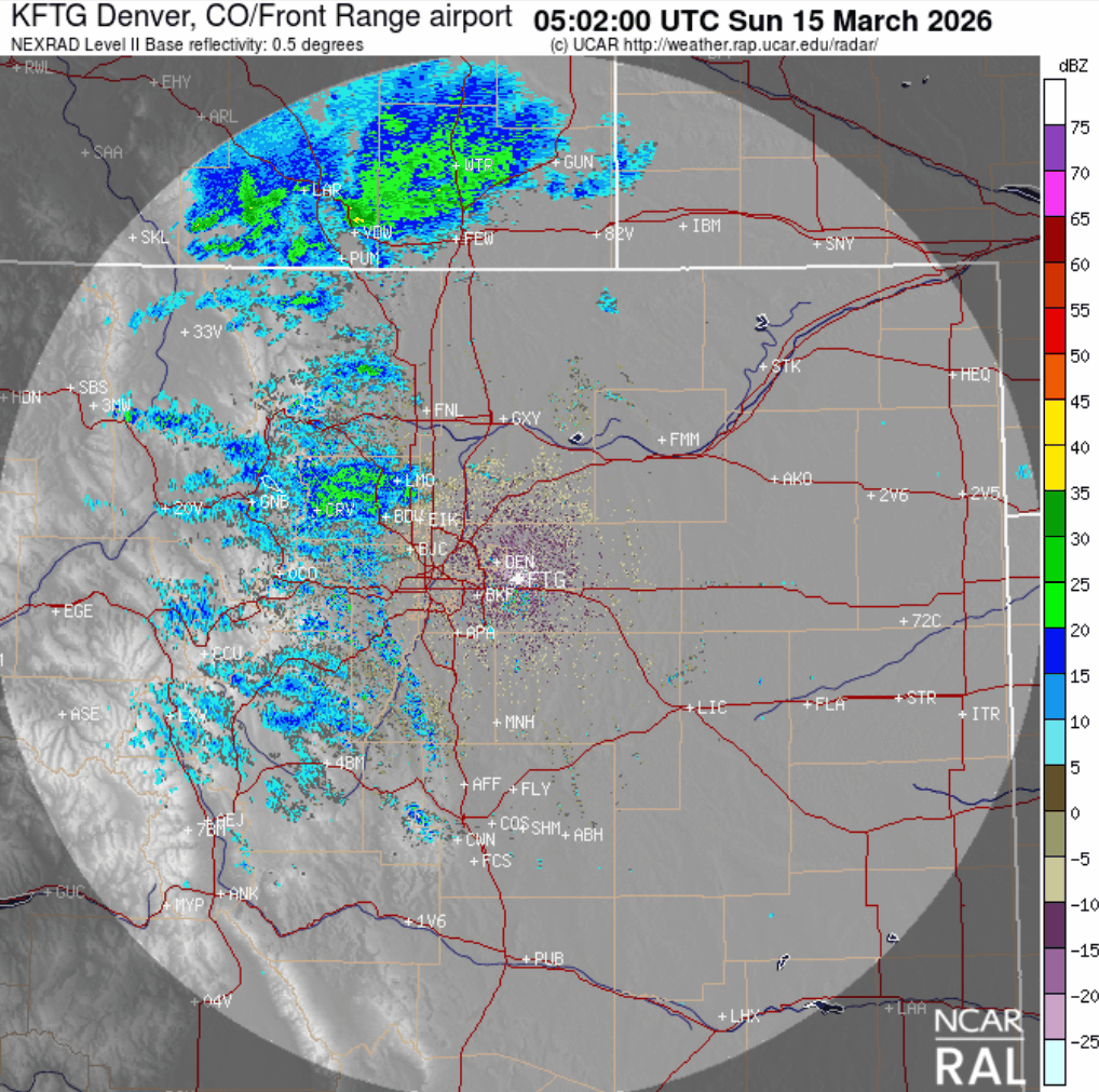 Several bands of heavy, convective snow showers developed and sagged across the Denver Metro area, ending before sunrise.