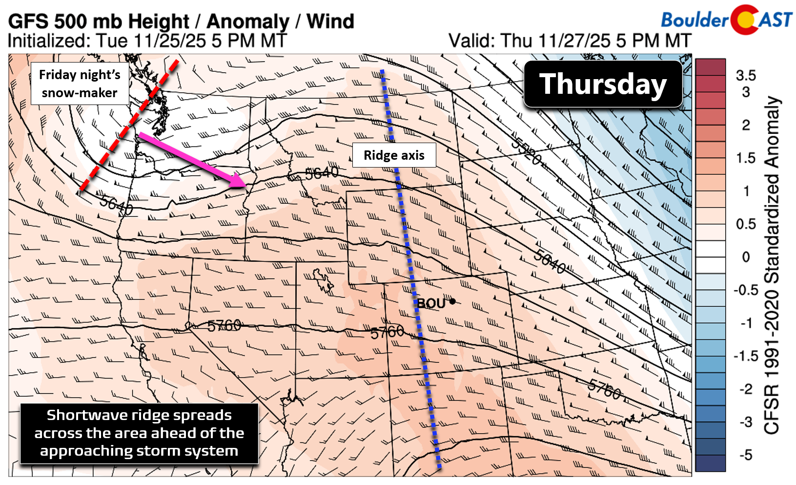 By Thursday, a subtle ridge of high pressure noses into Colorado, and the timing couldn’t be better.