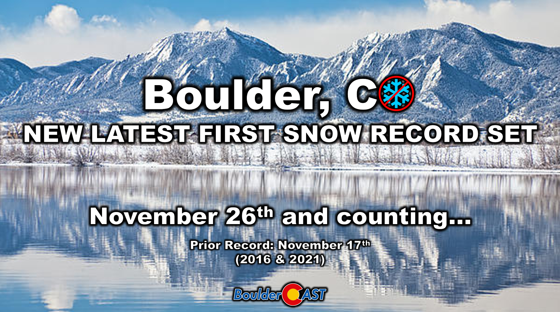Given there are two chances of snow during this upcoming bitter cold holiday weekend, and even if accumulations are light, Boulder should finally see its first snowfall of the season, etching whatever date that ends up being into the record books.