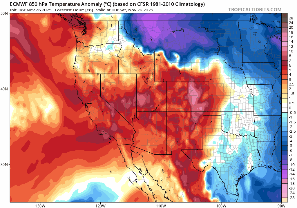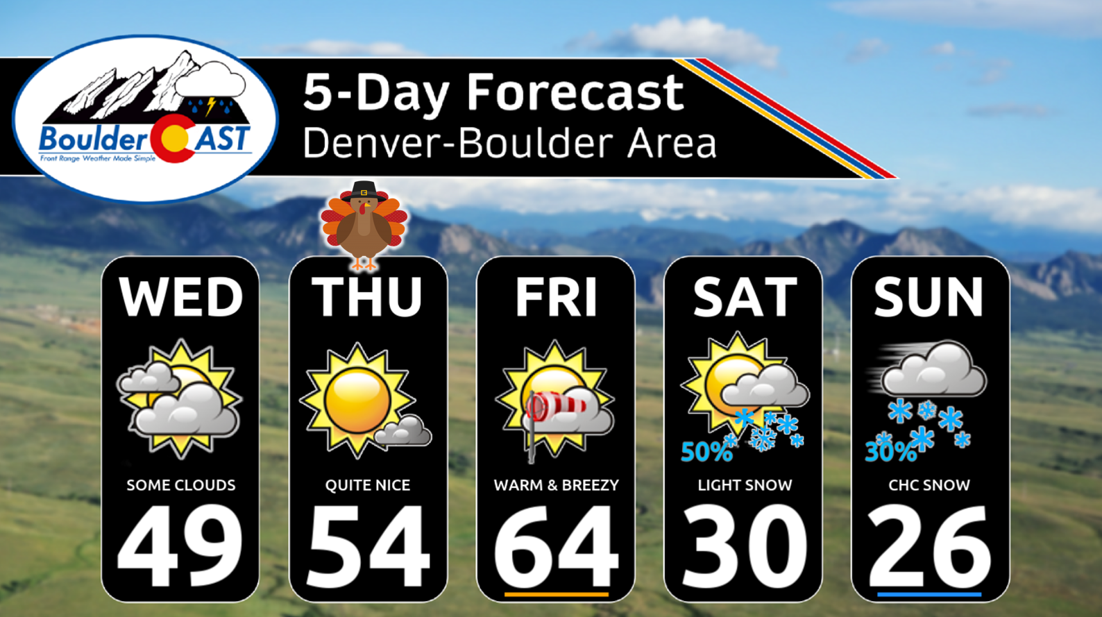 On Friday, the warming trend will peak. Boulder and Denver will surge into the 60s, capping off what’s already been an unusually warm November (nearly two-thirds of the month has had 60° or warmer temps). In most years, this kind of late-November warmth would be rare. Not in 2025.