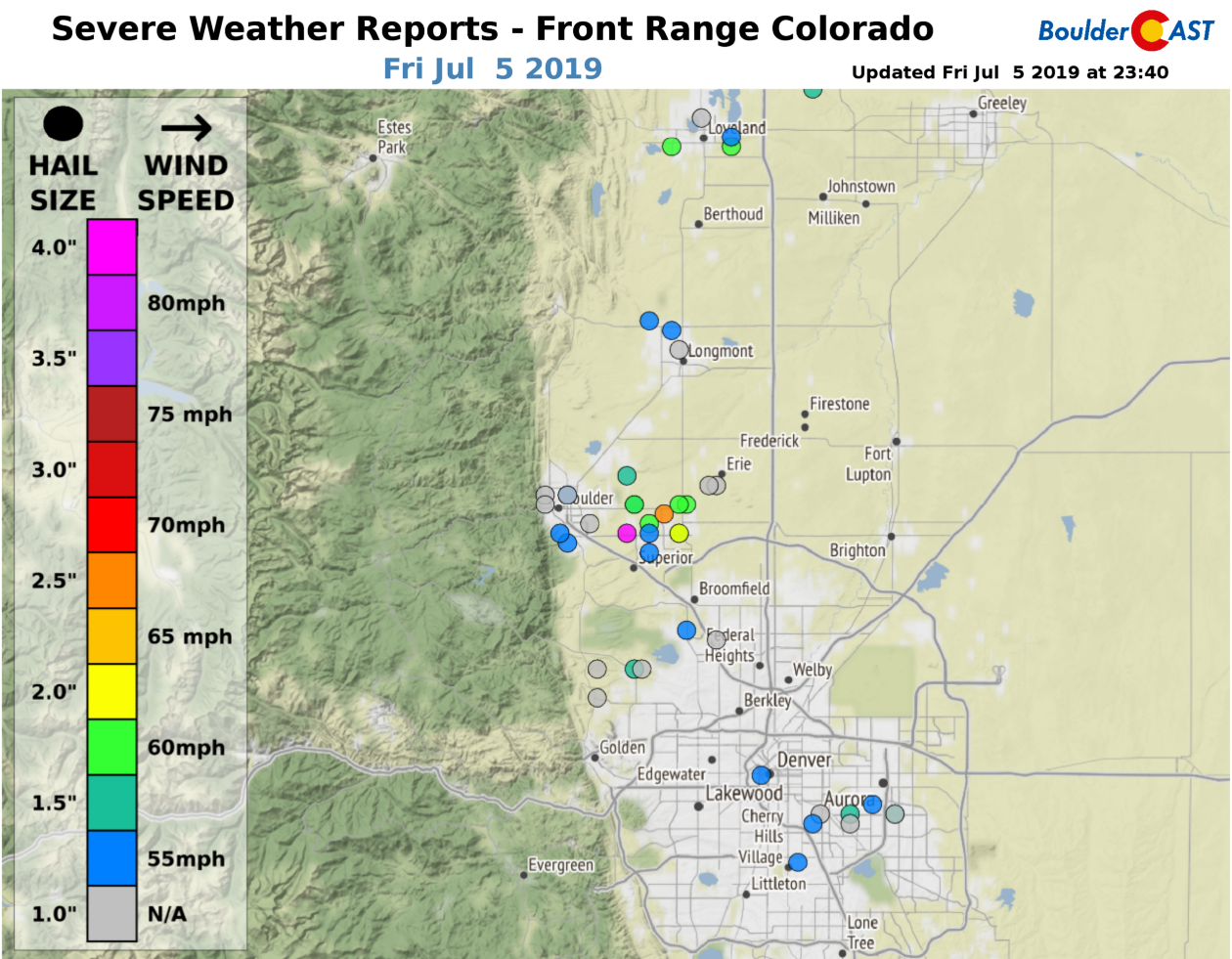 Observed radar animation from the evening of Friday July 5th. Numerous supercells developed across the Front Range.